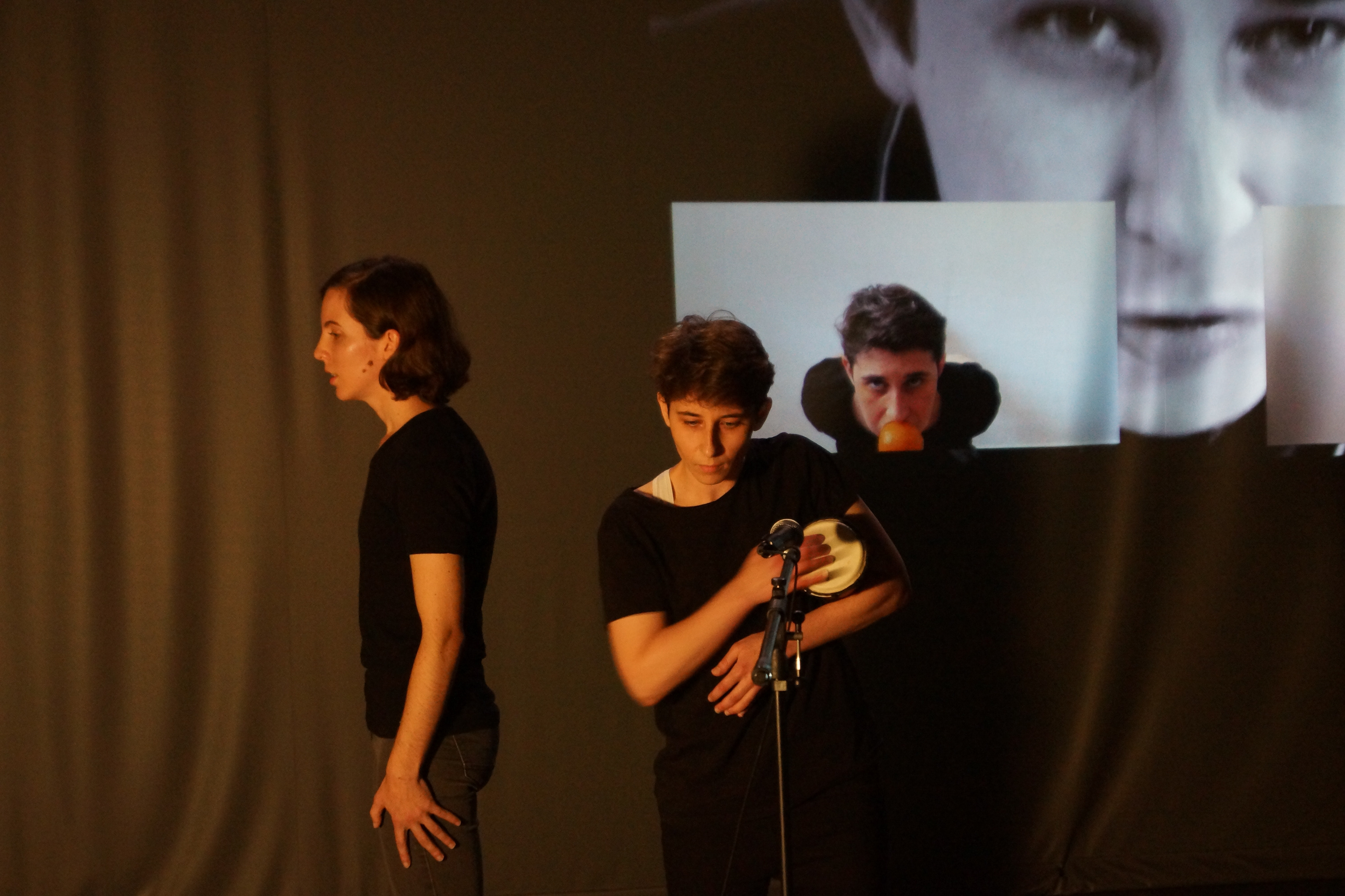 This one follows the same approach than the previous versions except for one detail. This version is designed under another scenography in which wandering no longer exists. The performers are back to back in order to listen only to each other's words. The meeting between the two performers takes place through listening as the words of one and the other complement each other. A vocal ping-pong in which voice is the only means of communication. Sometimes the voices overlap, unite or confront each other, but both carry the same message in this ritual, freedom and renewal.
